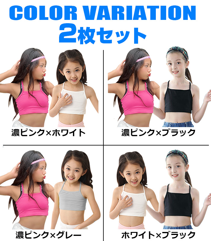 キッズダンス衣装 訳ありチューブトップ 2枚セット キャミソール 女の子 子供服 キッズ 無地 110cm〜160cm 小学生 中学生 ダンス衣装 ヒップホップ