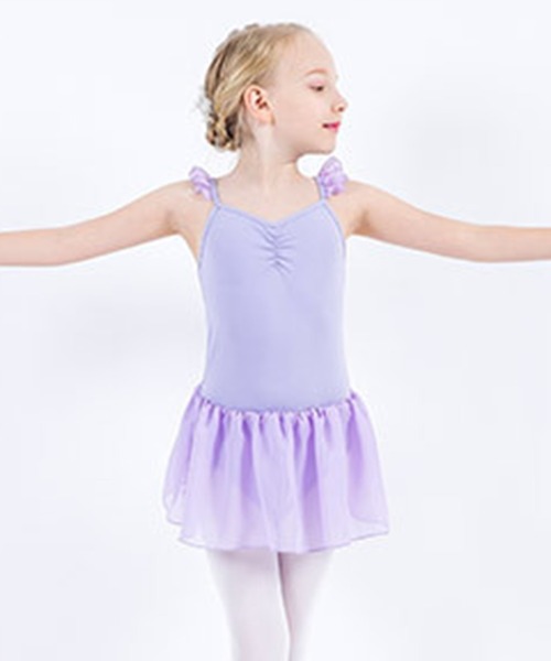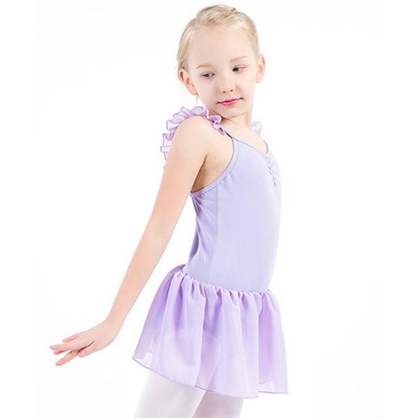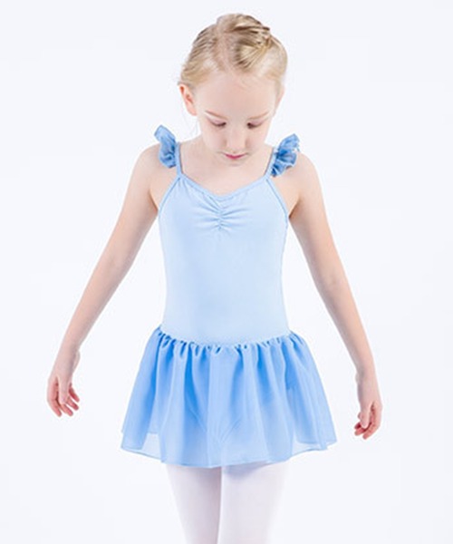 キッズ 肩フリルシースルーシフォンフレアスカートレオタード