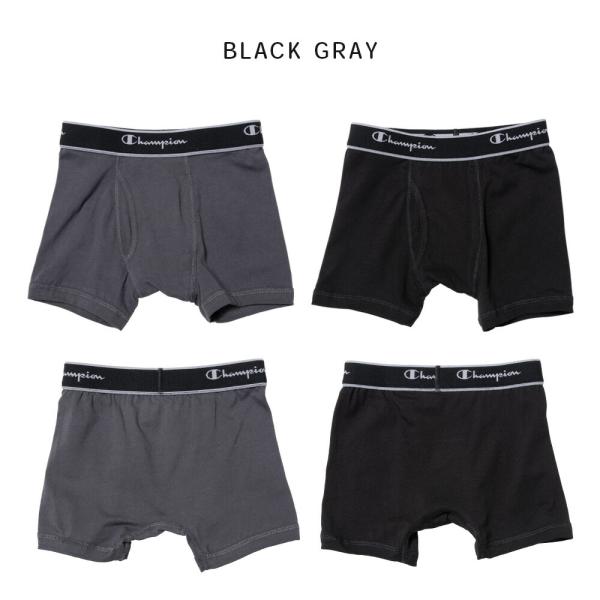 Champion 抗菌防臭 コットン ストレッチ ボクサーパンツ 2P 2枚組 前開き 下着 キッズ ジュニア 男の子 130 140 150 160 グレー/紺/黒 cb6et701 [BB-22]