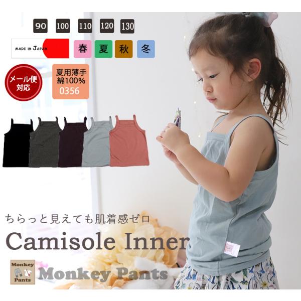 キャミソール下着肌着キッズベビー服子供服トップス ガールくすみカラー黒グレー見せキャミ(90cm100cm110cm120cm 130cm)0356