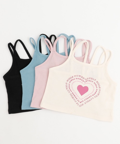 キャミソール 肌着 「快適さらリブ素材」ハートロゴダブルストラップキャミソール キッズ 子供服 女の子