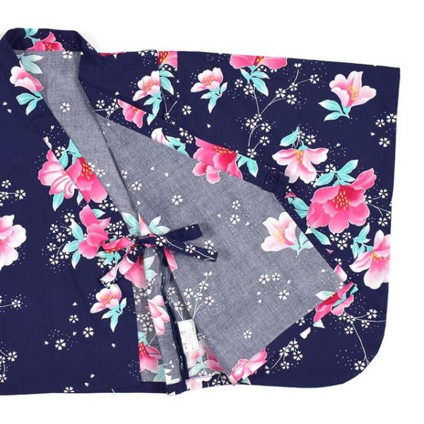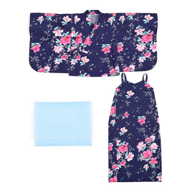 浴衣セット スイートピー・紺 ゆかた 浴衣ドレス 綿100% 子供 夏祭り 部屋着 花火大会