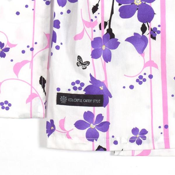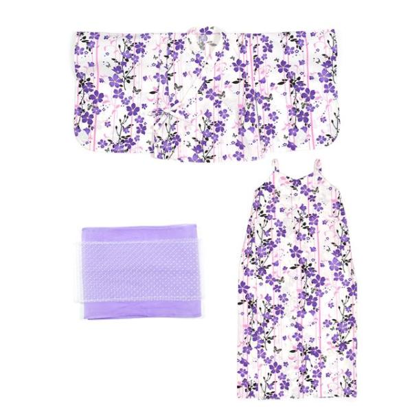 浴衣セット 花みずき・紫 ゆかた 浴衣ドレス 綿100% 子供 夏祭り 部屋着 花火大会