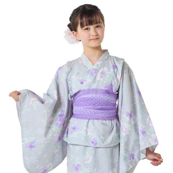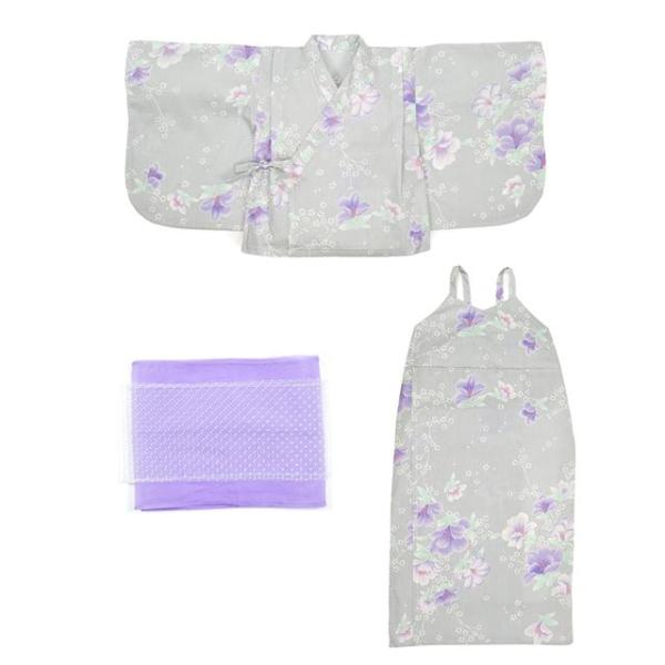 浴衣セット スイートピー・グレー ゆかた 浴衣ドレス 綿100% 子供 夏祭り 部屋着 花火大会