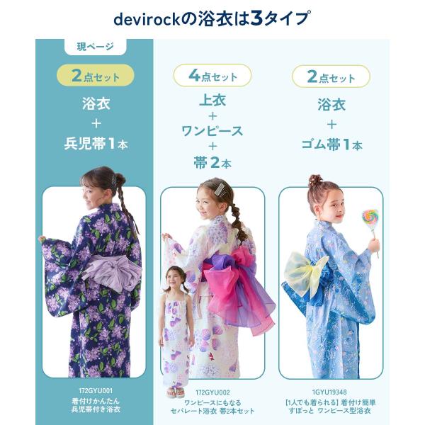 浴衣 着付けかんたん 兵児帯付き浴衣 キッズ ベビー服 子供服 女の子 デビロック devirock 浴衣甚平特集