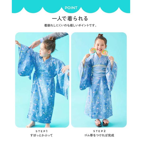 お祭り 夏祭り 花火大会 綿100% 作り帯 浴衣 【1人でも着られる】着付け簡単 すぽっと ワンピース型浴衣 キッズ ベビー服 子供服 女の子 浴衣甚平特集