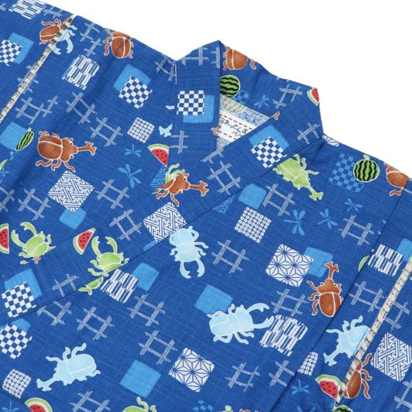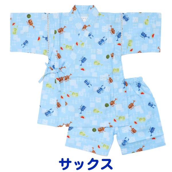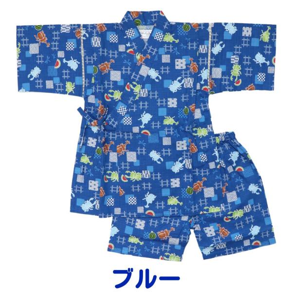 キッズ 甚平 カブトムシ カブト虫 男の子 子供用 子供 じんべえ じんべい 甚兵衛 ベビー 夏祭り 子ども こども 男の子用 子供服 上下セット 和服 ブルー