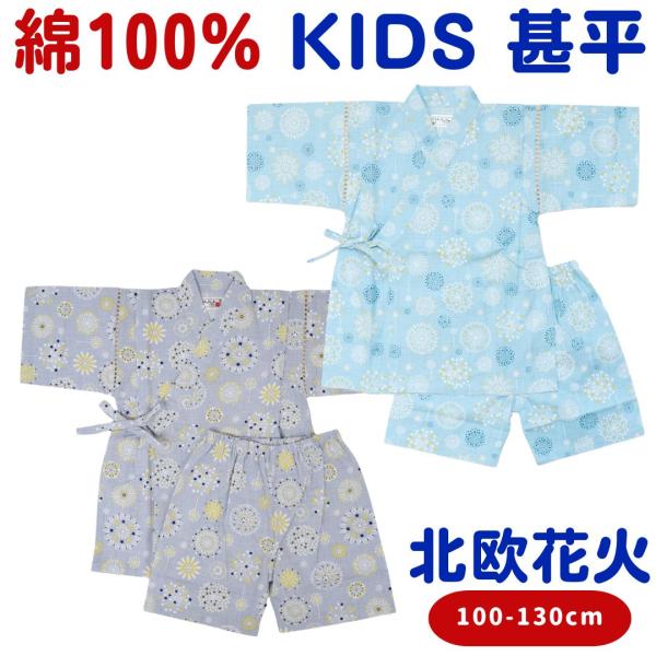 キッズ 甚平 北欧 花火 男の子 子供用 子供 じんべえ じんべい 甚兵衛 ベビー 夏祭り 子ども こども 男の子用 子供服 上下セット 和服 グレー ブルー ジンベイ