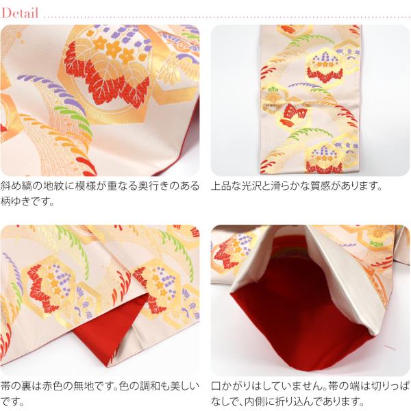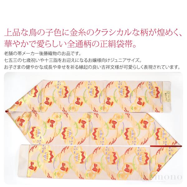 七五三 帯 7歳 袷用 日本製 訳あり 正絹 袋帯 子供用 古典柄 後藤織物 白系 753 手結び帯 平帯 キッズ