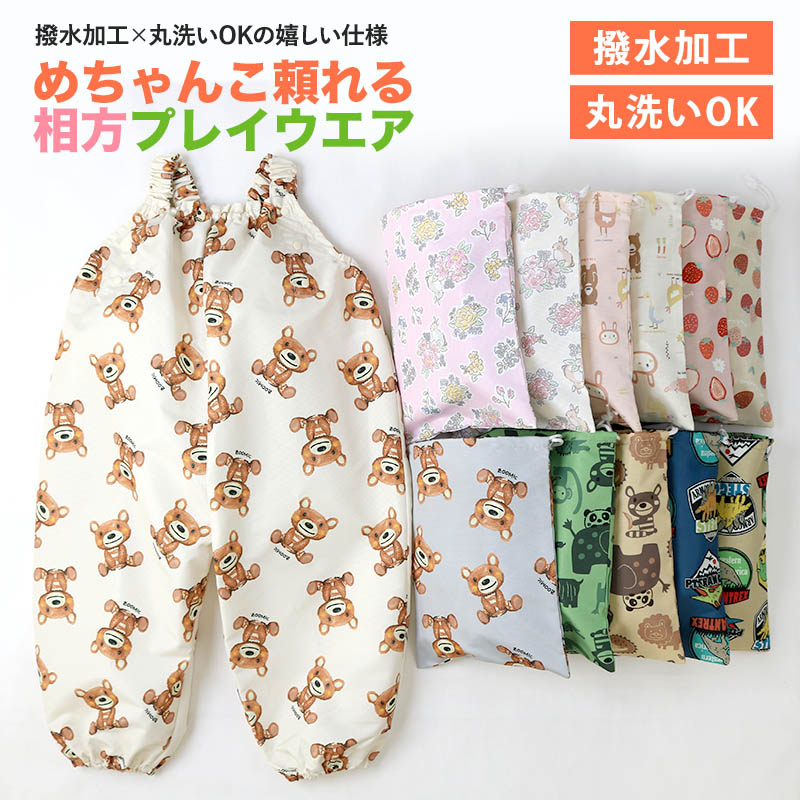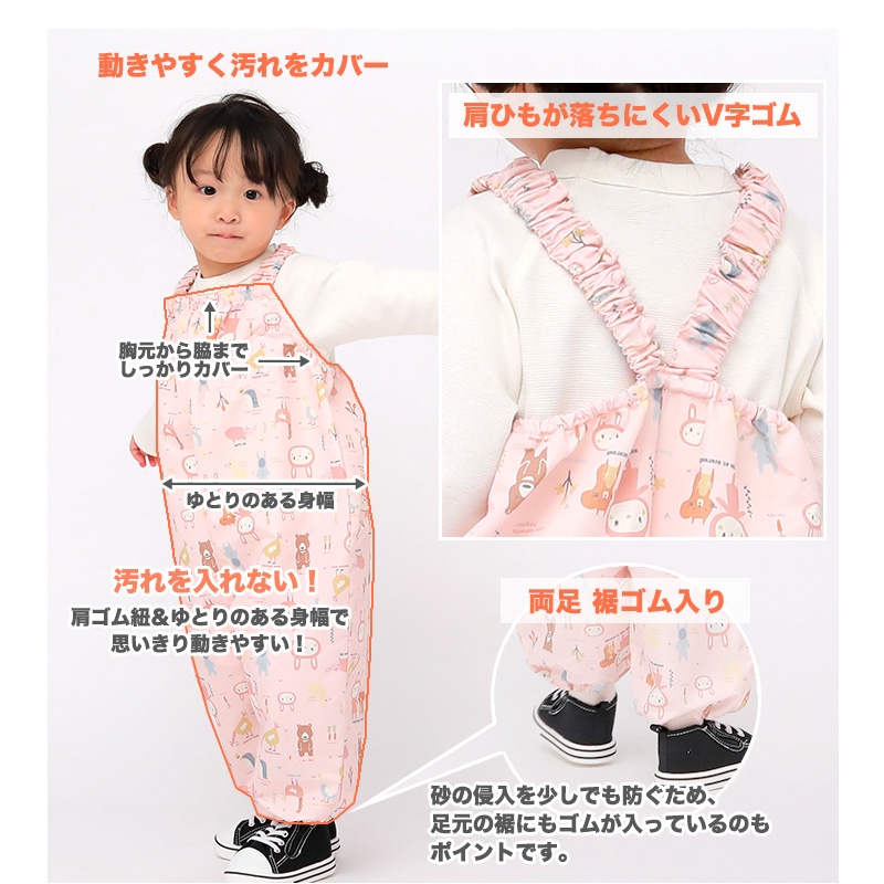 プレイウェア キッズ 収納ポーチ付き お砂場着 サロペット 砂遊び 撥水加工 くま 恐竜 幼稚園 保育園 子供用 エプロン ベビー 汚れ防止 ズーミック 総柄