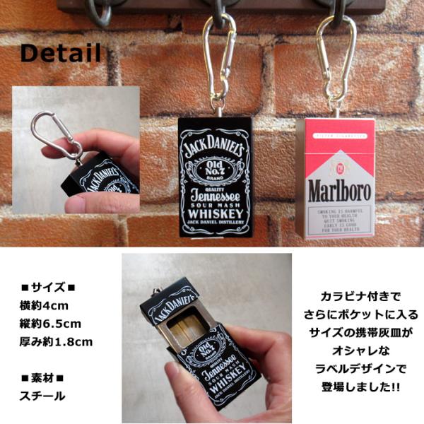 携帯灰皿 アッシュトレイ キーホルダー ジャックダニエル マルボロ キャメル 持ち運び 金属製 ポータブル ダブルスリー