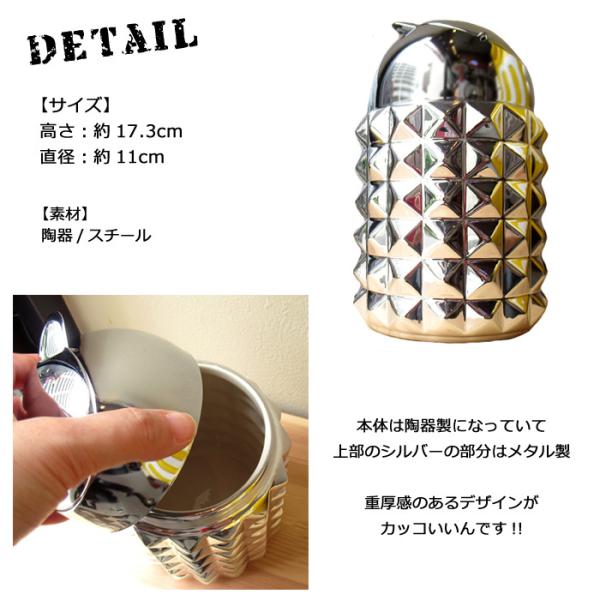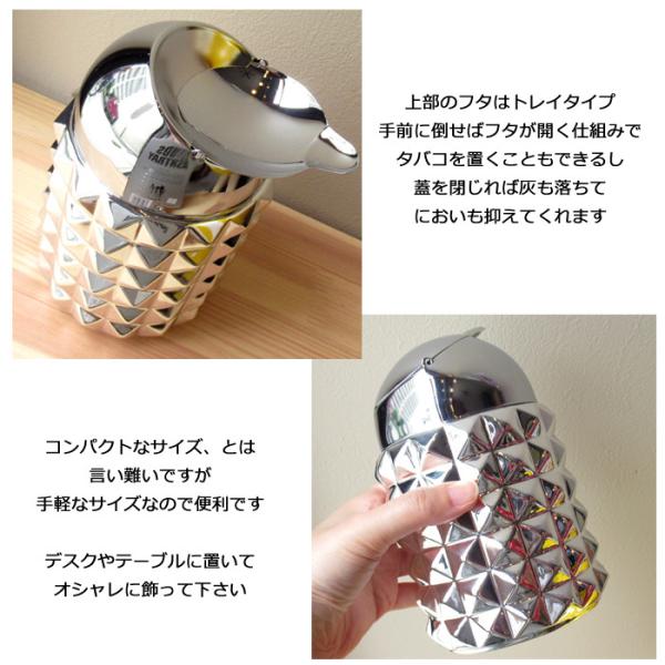 灰皿 蓋付き 陶器 アッシュトレイ STUDS 風よけ においを防ぐ 置き型 コンパクト シルバー トラッシュ形状 クリスマスプレゼント 男性 ダブルスリー