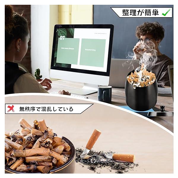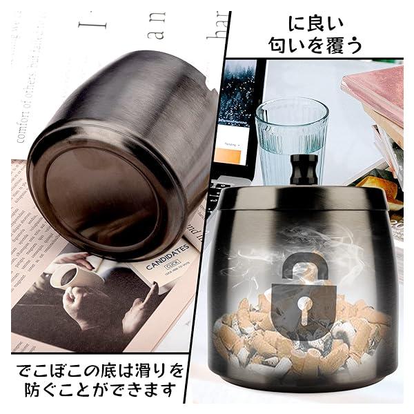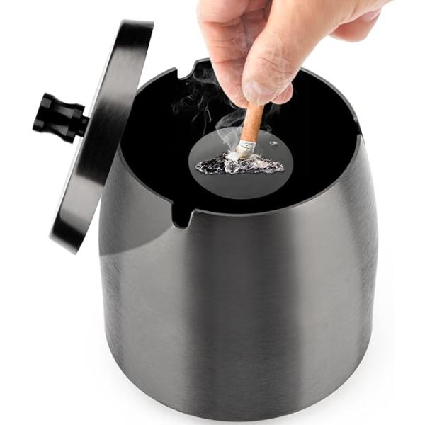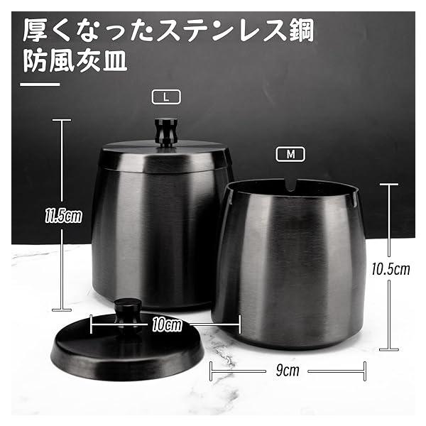 蓋付きステンレス鋼灰皿-滑り止めベース灰皿、ポータブル灰皿、屋内および屋外での使用に適しています、Black、M