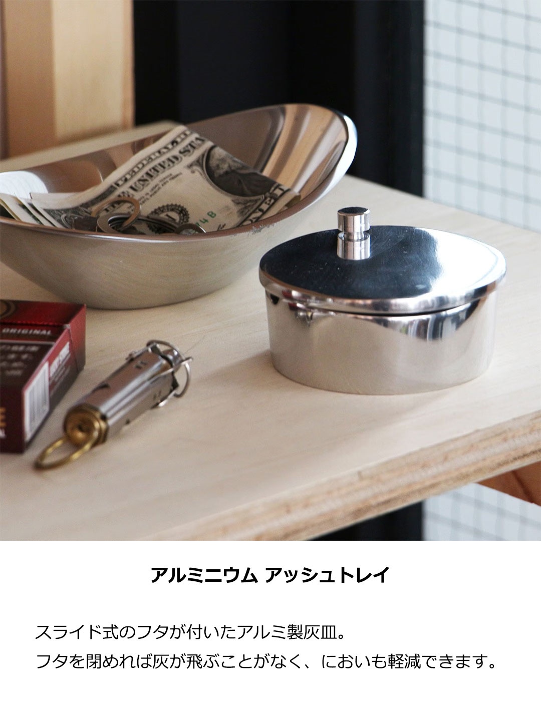 DETAIL ディテール Aluminium Ashtray 蓋付き アルミ 灰皿 灰が飛ばない 防臭 木 屋外 卓上 自宅 タバコ ミニ インテリア かわいい オシャレ アッシュトレイ