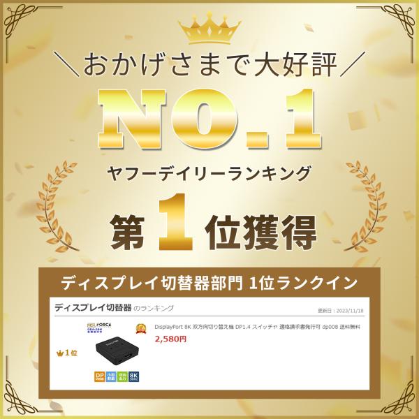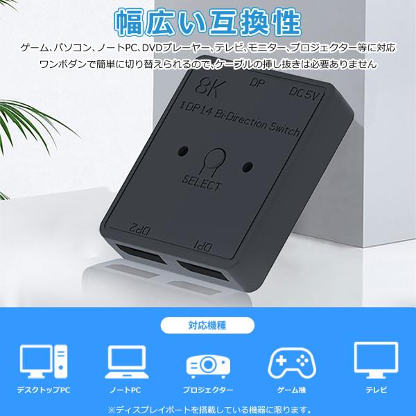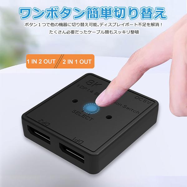 【最大600円OFF限定クーポン】DisplayPort 8K 双方向切り替え機 DP1.4 スイッチャ 適格請求書発行可 dp008 送料無料