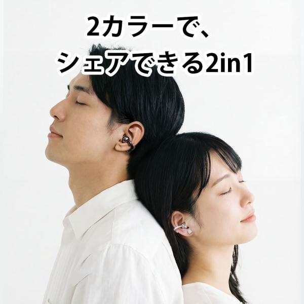 ワイヤレスイヤホン Bluetooth6.0 2in1 入耳式+イヤーカフ式 自動ペアリング ノイズキャンセリング 高音質 両耳 片耳 耳挟み式 耳を塞がない iPhone/Android