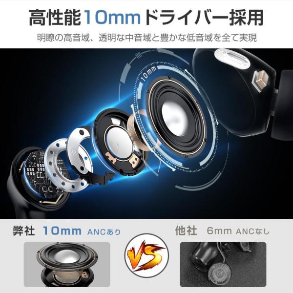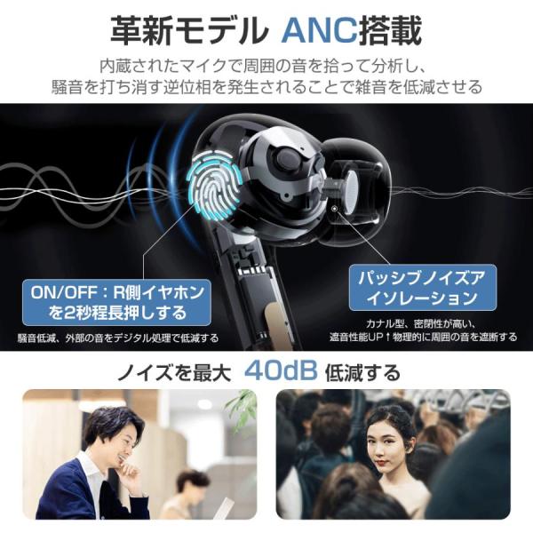 ワイヤレスイヤホン Bluetooth5.2 ANCノイズキャンセリング コンパクト 高音質 重低音 防水 スポーツ iPhone Android ブルートゥース 最新型 敬老の日