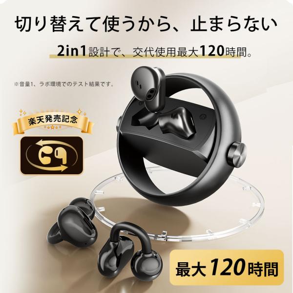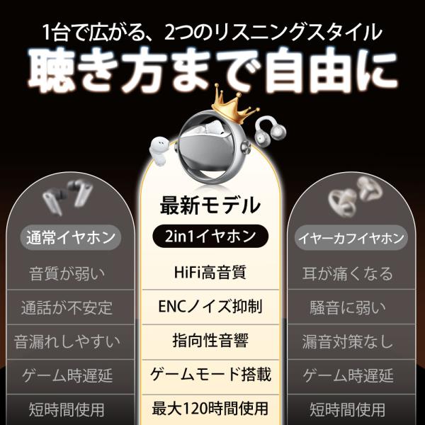 ワイヤレスイヤホン Bluetooth6.0 2in1 入耳式+イヤーカフ式 自動ペアリング ノイズキャンセリング 高音質 両耳 片耳 耳挟み式 耳を塞がない iPhone/Android