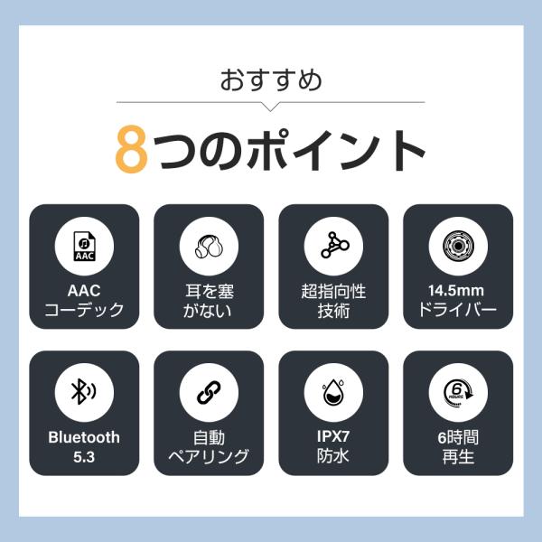 イヤホン ワイヤレスイヤホン Bluetoothイヤホン 耳を塞がないイヤホン 長時間再生 ブルートゥース 片耳 両耳自動ペアリング IPX7防水 iPhone/Android対応