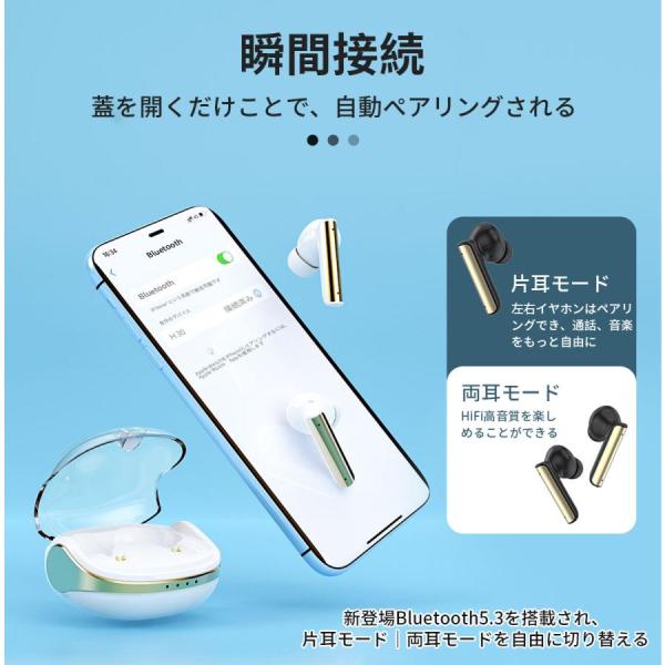 ワイヤレスイヤホン 高音質HiFi Bluetooth5.3 ワイヤレス イヤホン 片耳モード マイク ipx6防水 スポーツ 自動ペア 可愛い プレゼント 初売り 2024最新版