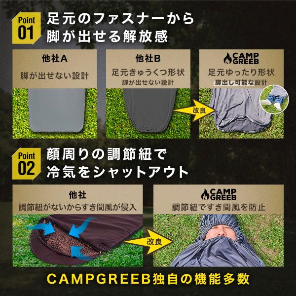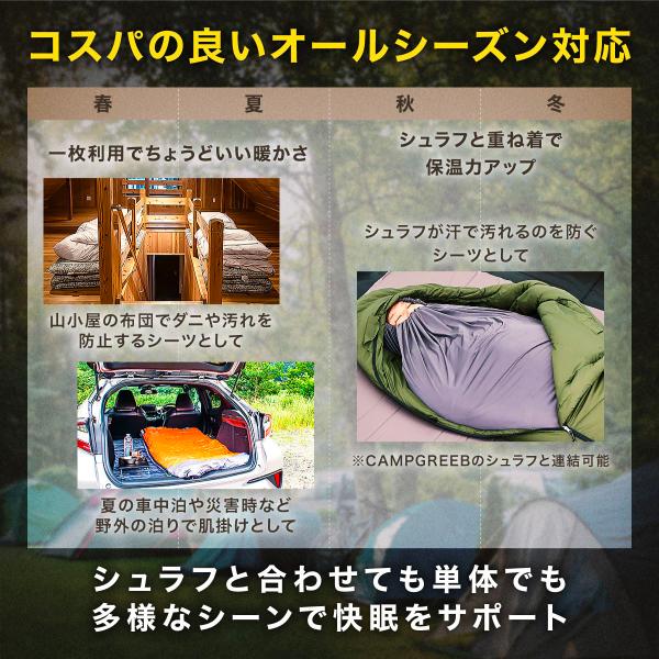 寝袋 インナーシュラフ 防災 軽量 夏用 夏 ファスナー 丸洗い 防ダニ 防菌 寝袋 シーツ 薄型 インナーシーツ キャンプグリーブ 公式 CAMP GREEB