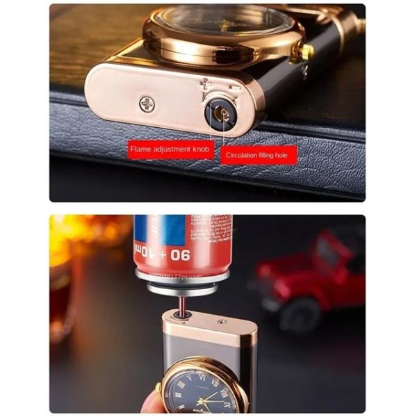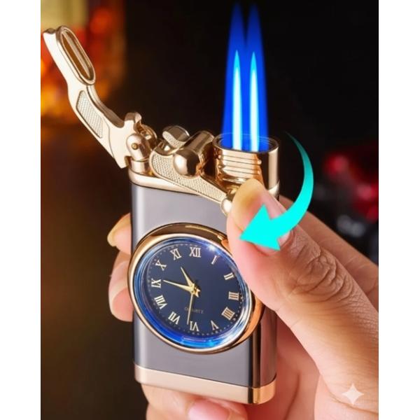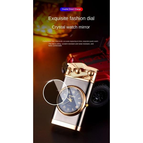 ダブルジェット 時計付きライター メタル製 5色 ガスライター 電子ライター たばこ タバコ 煙草 喫煙具 ライター ウォッチ 時計 おしゃれ 可愛い おもしろ