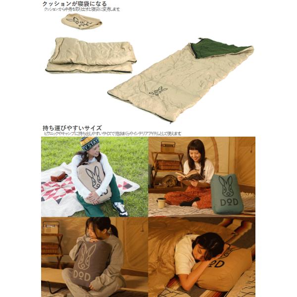 DOD クッション 寝袋 封筒型 ウサクッション シュラフ ウサギロゴ入りクッション 掛け布団 抱きまくら ピクニック ウサクッションシュラフ S1-936-GY【NEW】