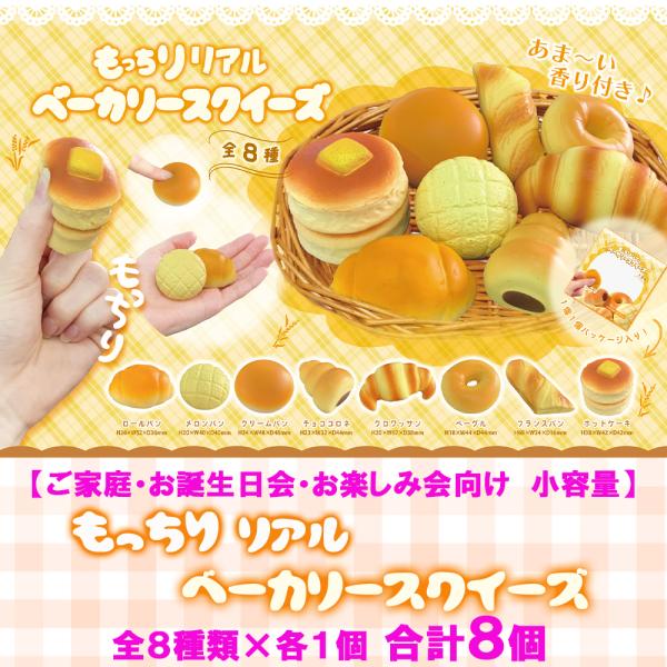 スクイーズ もちもち リアルベーカリー 全8種類×1個 計8個 セット ( ご家庭 お誕生日会 向け 小容量 ) 甘い香り おもちゃ 玩具 ぷにぷに感触 おままごと