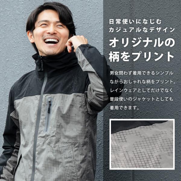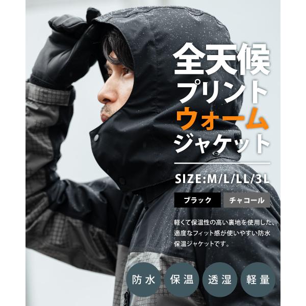 レインジャケット メンズ レディース レインウェア 防水 保温 防寒 ストレッチ 雨具 合羽 通勤 通学 アウトドア 5452 全天候プリントウォームジャケット
