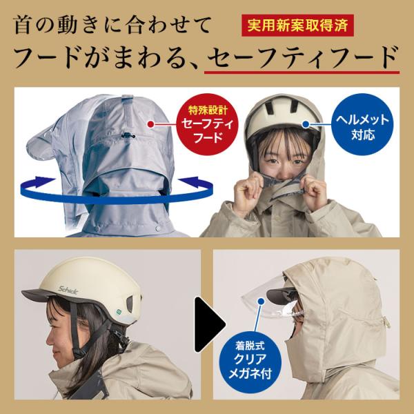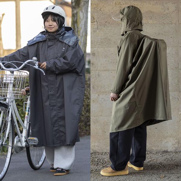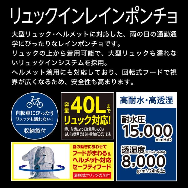 THE ROOTS レインポンチョ リュック対応 回転フード ヘルメット対応 男女兼用 収納袋付き レインコート 自転車 防水 通学 通勤 リュックイン