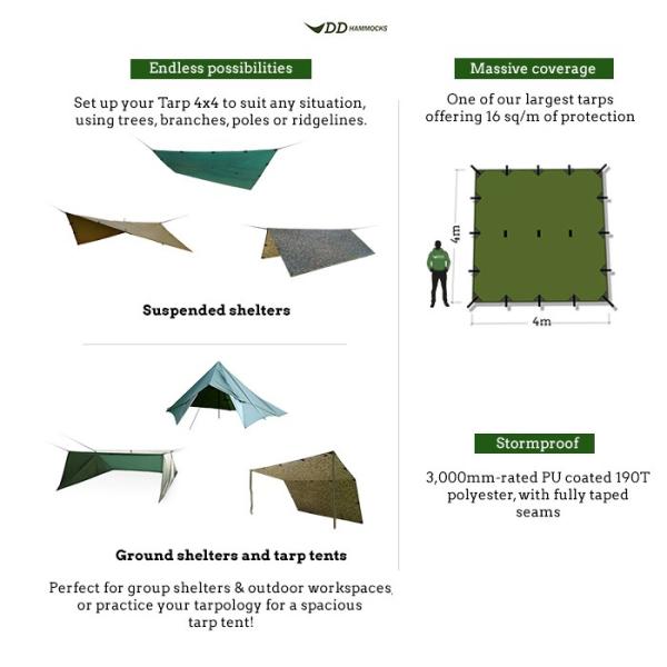 DDハンモック DDタープ 4m X 4m タープテント 日よけ シェード サンシェード テント おしゃれ MC Tarp マルチカム 迷彩 DD Hammocks