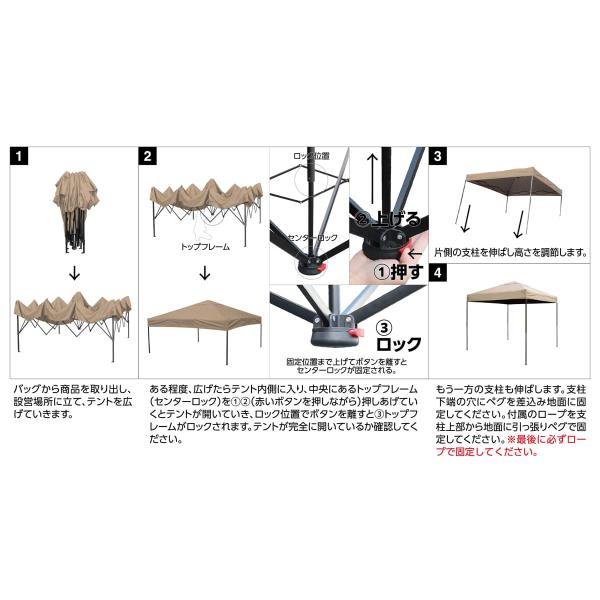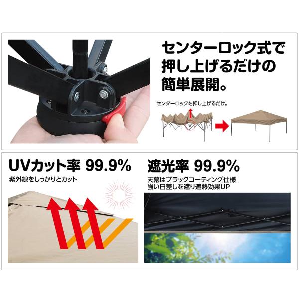 Field to Summit センターロックテント250ベージュ FTSSU250BEB UVカット 遮光率99.9% ブラックコーティング センターロック ワンタッチアップ 簡単 タープ