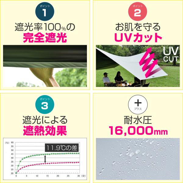 ヤフー1位 ヘキサタープ 遮熱 遮光 幅530cm×570cm Lサイズ 6〜8人用 タープテント 日よけ UVカット 高耐水 大型 テントポール 4人 5人 6人 1年保証 送料無料