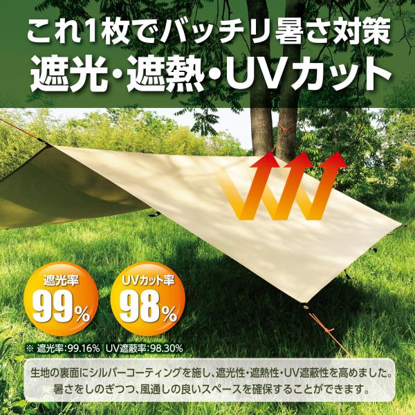 【先着20名様限定!新発売記念SALE】MyCamp タープ 3m×3m 防水 レクタタープ サンシェード 遮光 遮熱 UVカット 日除け 【安心の1年保証】