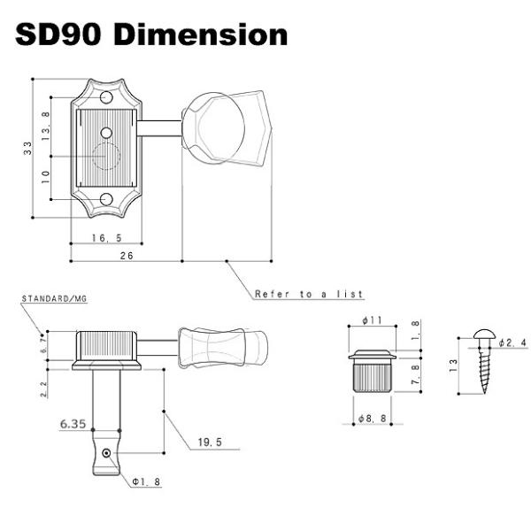 GOTOH SD90 SL N ゴトー ギター ペグ ニッケル 両側タイプ 6個セット 【SD90-SL/N/L3R3】