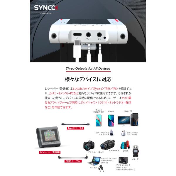 技適マーク認証 SYNCO G3 ワイヤレス ピンマイク トリプルチャンネル Switchマイク iPhone/Android/一眼レフカメラ/ビデオカメラ/PC/レコーダー 録音マイク