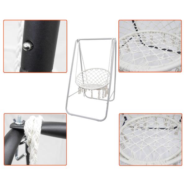 自立式 ハンモックチェア ガーデンブランコ ハンギングチェア スタンド チェア ロープ式 アウトドア インテリア 室内 HC-04WH 白