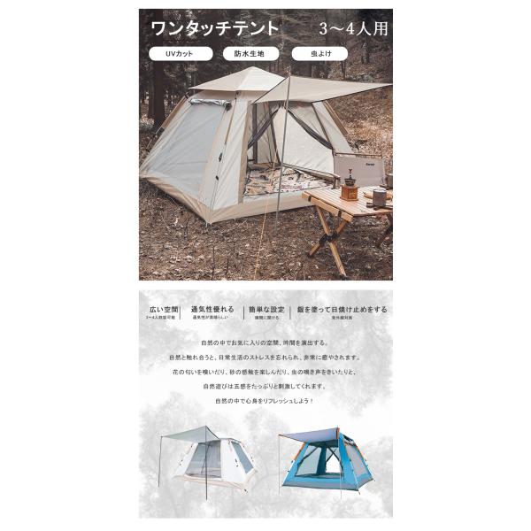 「プレゼントあり」テント ワンタッチテント ポップアップテント 3-4人用 キャンプテント UVカット 軽量 防水 折りたたみ 簡易テント メッシュ 虫よけ
