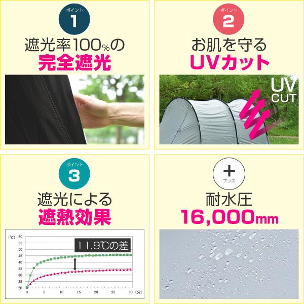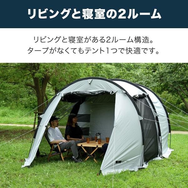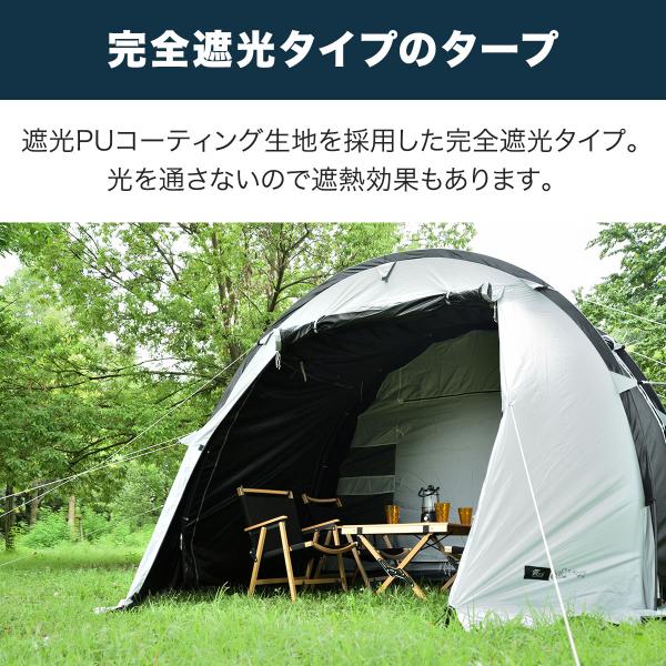 テント ドームテント 480cm×260cm 3人〜4人用 100%完全遮光 遮熱 UVカット PUコーティング グレー/黒 大型 トンネルテント480 1年保証 送料無料