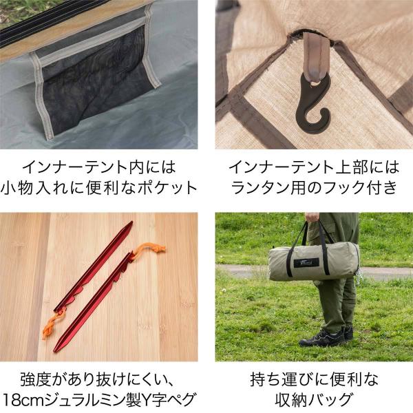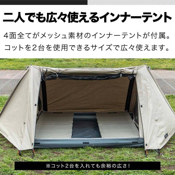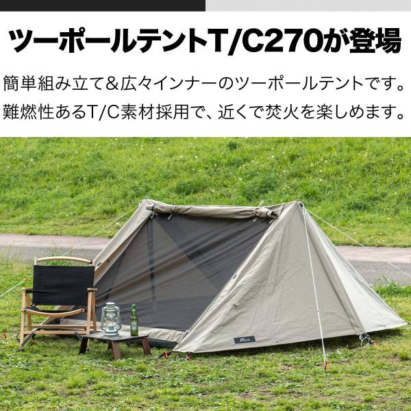 ツーポールテント T/C 270 パップテント ワイド 2.7m 難燃ポリコットン インナーテント付 1人用〜2人用 ソロテント 三角テント 軍幕 テント 1年保証 送料無料