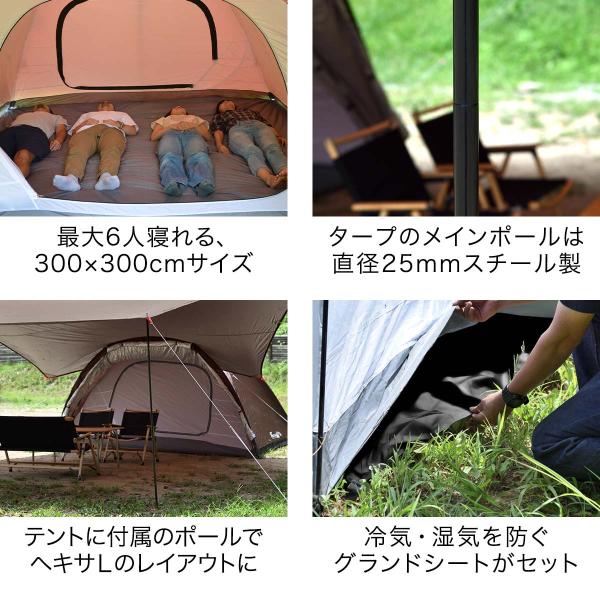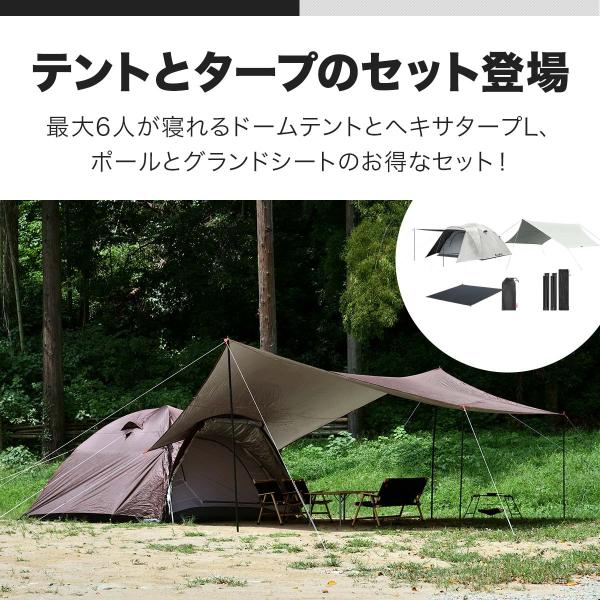 キャンプセット一式 キャンプテント ヘキサタープ テントポール シート ファミリー 家族用 4人用 5人用 6人用 大型 ドームテント アウトドア 1年保証 送料無料