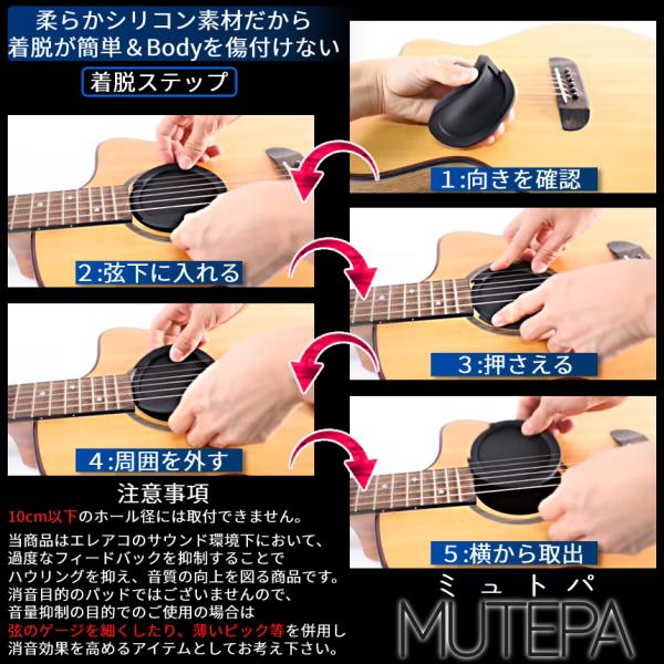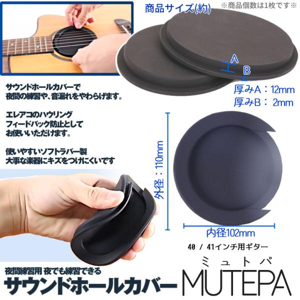 ギター サウンド ホール カバー 消音 弱音 パッド 40インチ 41インチ ハウリング 音漏れ 防止 シリコン ミュート 夜間 練習 弾く エレアコ アコギ MUTEPA