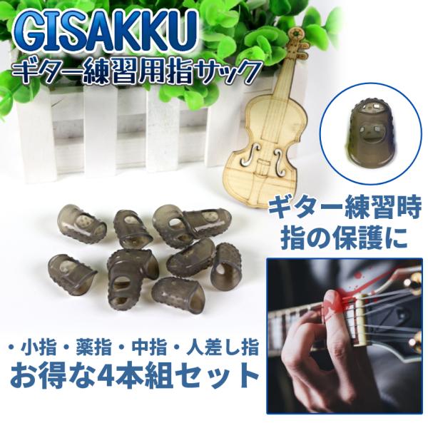 ギター 指サック 練習 指 保護 パッド シリコン 指先 プロテクター 弦 痛くない フィンガー スリーブ コード 配列 フレット 指板 アコギ エレキ 弦楽器 GISAKKU