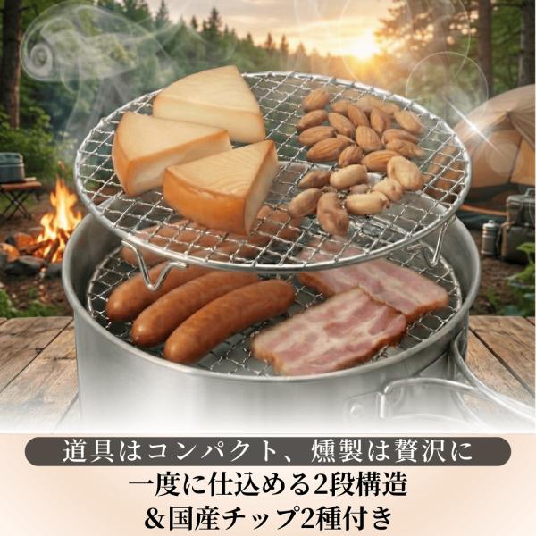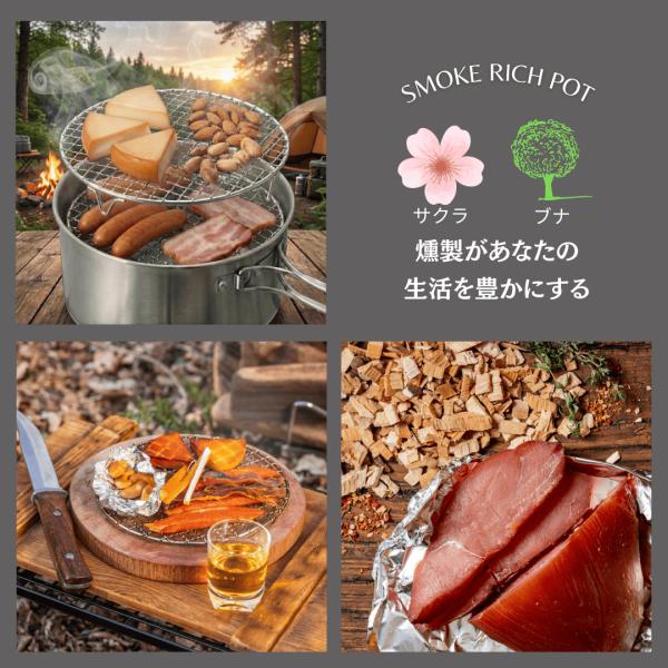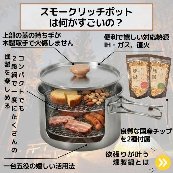 燻製器 燻製機 家庭用 スモークリッチポット キャンプ 燻製 燻製鍋 自宅 アウトドア スモーカー BBQ 小型 チップ2種付 日本企画 保証