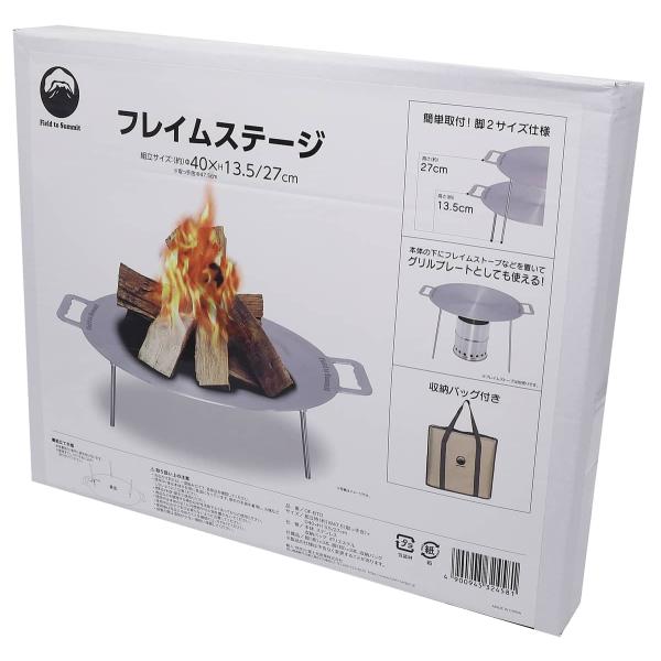 Field to Summit フレイムステージ OFBTO ステンレス 焚き火台 グリドルパン 直径約40cm 板厚3mm 取っ手 1台2役 収納バッグ バーベキュー グリル プレート