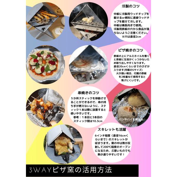 3WAYピザ窯 収納袋付き 焚火台 燻製 ピザ窯 アウトドアギア キャンプ オーブン パン焼き グラタン スキレット 焼き鳥 串焼き コンパクト 防災 社内常備 ソロ