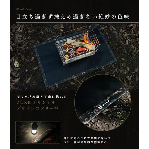 ZUKK ズック 公式 焚き火シート 正方形 60x60 黒 スパッタシート 焚き火台シート ツリー柄 大判 焚き火台 キャンプ 耐火 耐熱 防炎 防火 ガラス繊維