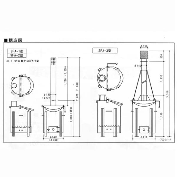 焼却炉 SFA-2型 120L 家庭用・オフィス・商店に最適 鈴木工業 坂A 受注生産品 個人宅配送不可 代引不可