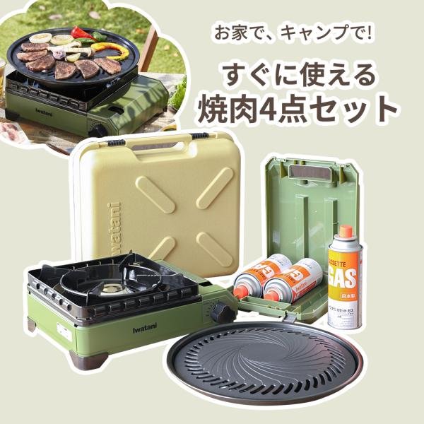 カセットコンロセット イワタニ タフまる すぐに使える 焼肉4点セット (タフまる + 焼肉プレートL + 純正カセットガス3本組+ボンベ収納ケース)