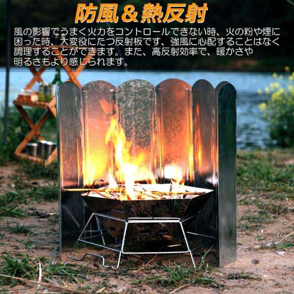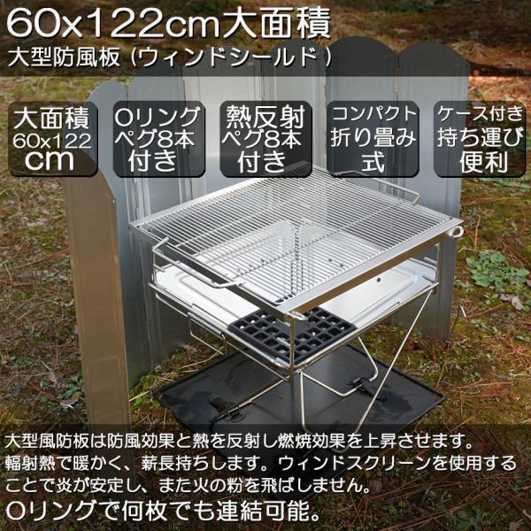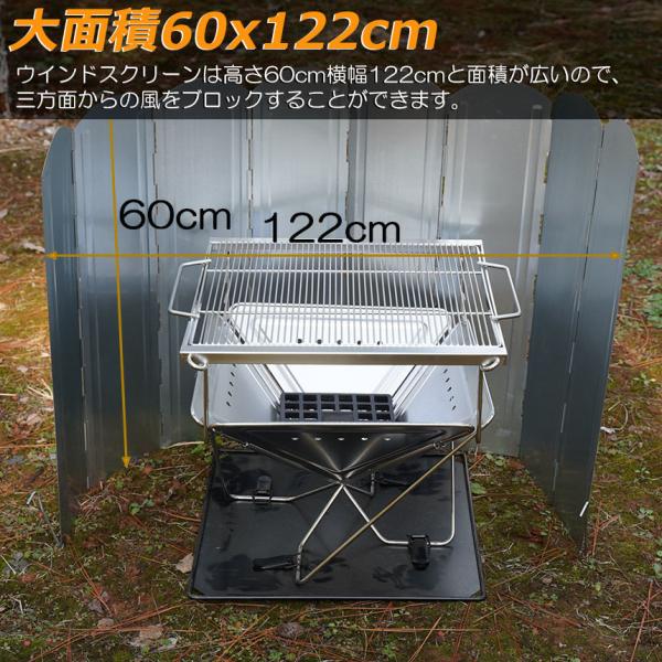 ウインドスクリーン 60cm 焚き火 リフレクター 反射板 風除板 防風板 亜鉛メッキ鋼板 大型 風防 キャンプ 風よけ 収納ケース